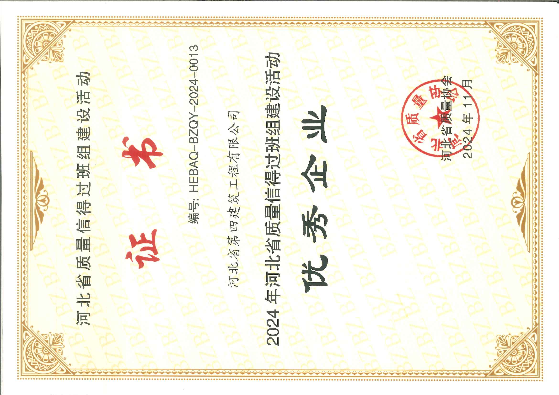 2024年河北省質量信得過班組建設活動優(yōu)秀企業(yè)