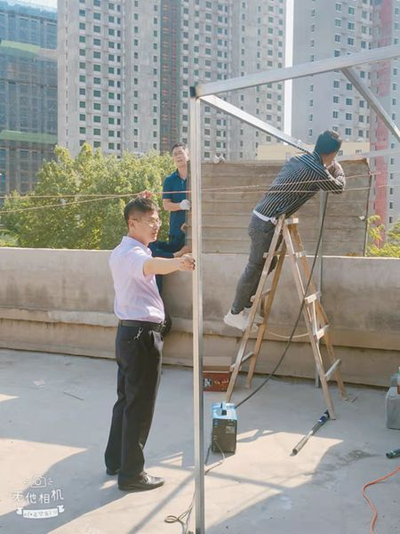 說(shuō)干就干,立即行動(dòng)。劉保國(guó)和左建華對(duì)樓頂平臺(tái)實(shí)地量測(cè),記錄好尺寸。兩人一邊量著,一邊比劃著,對(duì)所需的材料做到心中有數(shù)。“采購(gòu)材料的事兒,就交給我了?!痹O(shè)備材料科科長(zhǎng)史永濤拿出電話就開始聯(lián)系起來(lái)。材料就位后,考慮到有些電焊的活兒需要專業(yè)的工人,劉保國(guó)趕緊聯(lián)系了一名電焊工。大家分工合作,你遞材料、我扶鋼管,你安裝、我綁線,邊干邊聊。30多度的高溫下,大家的額頭上直冒汗,但干勁兒絲毫沒(méi)減。防雨棚安裝完畢,新買的洗衣機(jī)放置到位,大家松了一口氣?!敖裉斓拇蠊こ探Y(jié)束了,趁著這次機(jī)會(huì),咱們把宿舍的門窗都檢查一遍?!眲⒈?guó)說(shuō)道,抬手擦了擦汗水,便拿起工具向宿舍走去。大家對(duì)宿舍的門窗逐一進(jìn)行檢查,對(duì)破洞的紗窗進(jìn)行了更換,對(duì)門上松動(dòng)的把手進(jìn)行了維修。
