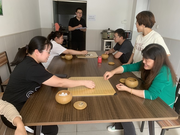 轉(zhuǎn)場來到“以棋會友,其樂無窮”的五子棋比賽現(xiàn)場,比賽在自由組合的七個小組之間進行,兩兩一組對弈,(。)經(jīng)過層層比拼,決出了比賽的獲勝者。對弈過程中選手每走一步都深思熟慮,慎之又慎。低頭看向棋盤,黑子白子交錯之中,仿佛有無數(shù)的機關(guān),橫向、縱向、斜向的棋子令人眼花繚亂?!皺M看成嶺側(cè)成峰”,這些棋子復(fù)雜的排列更加考驗了參賽者的觀察能力。大家相互切磋交流,提高了棋技,也增進了彼此間的感情。