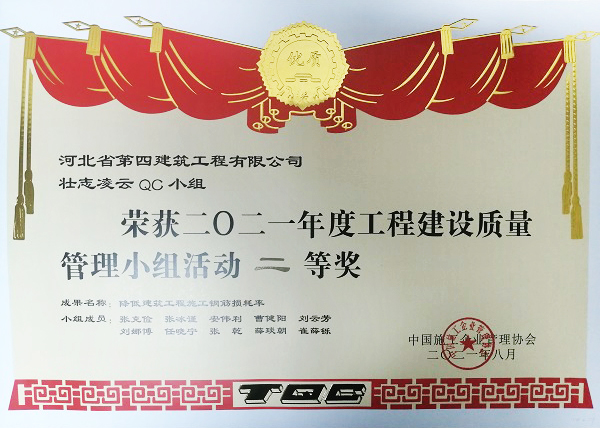 10月中旬,公司收到中國施工企業(yè)管理協(xié)會《關(guān)于公布2021年工程建設優(yōu)秀質(zhì)量管理小組的通知》,在中國施工企業(yè)管理協(xié)會工程建設質(zhì)量管理競賽中,七分公司壯志凌云QC小組經(jīng)過初賽、復賽、決賽三個階段比拼,最終榮獲二等獎。
