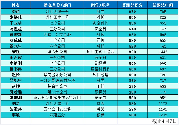 “等你來戰(zhàn)!公司‘安全培訓(xùn)教育月’微信答題活動開始啦!”隨著4月1日首次答題的推出,公司為期一個月的“強(qiáng)化安全教育,共建安康環(huán)境”主題安全生產(chǎn)知識微信答題活動拉開了帷幕。