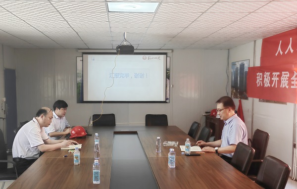 在項(xiàng)目會(huì)議室,董富強(qiáng)首先聽取了項(xiàng)目部關(guān)于進(jìn)度、安全、質(zhì)量、文明施工等情況的匯報(bào)。他邊聽邊記,邊聽邊問,“施工進(jìn)度怎么保證?”“創(chuàng)優(yōu)目標(biāo)如何實(shí)現(xiàn)?”……他問得很細(xì),記得認(rèn)真,反復(fù)強(qiáng)調(diào)施工任務(wù)要再細(xì)化,務(wù)必卡緊節(jié)點(diǎn),創(chuàng)優(yōu)工作要再深入,務(wù)必措施到位。在項(xiàng)目施工現(xiàn)場(chǎng),董富強(qiáng)實(shí)地了解工程進(jìn)展情況并進(jìn)行指導(dǎo)。正值全國“安全生產(chǎn)月”活動(dòng)開展之際,董富強(qiáng)要求項(xiàng)目部提高政治站位,壓緊壓實(shí)責(zé)任,落細(xì)落實(shí)管控措施,確保施工安全。