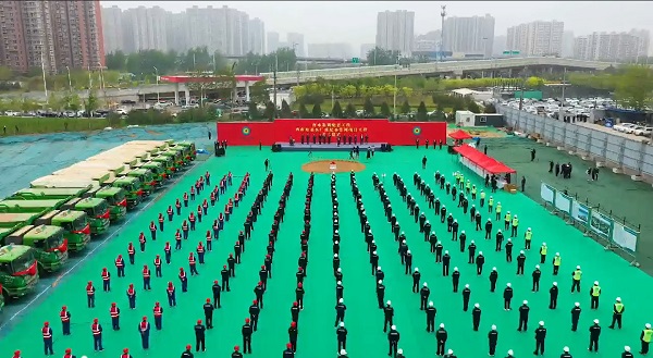 活動(dòng)現(xiàn)場彩旗飛揚(yáng)、氣氛熱烈,大型機(jī)械設(shè)備整齊排列,建設(shè)工人整裝待發(fā)。儀式在歡快激昂的樂曲聲中拉開序幕,石家莊水投集團(tuán)黨委副書記、總經(jīng)理盧金河首先介紹項(xiàng)目概況及其重大作用意義,市國資委黨委書記、主任劉國勤及市城管局二級(jí)調(diào)研員程利輝先后致辭。公司黨委書記、董事長董富強(qiáng)在發(fā)言時(shí)強(qiáng)調(diào),作為工程總承包特級(jí)資質(zhì)企業(yè),河北四建決心把各級(jí)各界領(lǐng)導(dǎo)的信心,化作優(yōu)質(zhì)、高效、安全、綠色施工的強(qiáng)大動(dòng)力,組建精干高效的項(xiàng)目班子,科學(xué)配置資源,精心組織施工,堅(jiān)決遵守建設(shè)工程管理法律法規(guī),認(rèn)真落實(shí)公司“營造時(shí)代精品建筑、構(gòu)建和諧安康環(huán)境”的管理方針,講誠信重履約、高起點(diǎn)高標(biāo)準(zhǔn)推進(jìn)工程建設(shè),持之以恒抓質(zhì)量、保進(jìn)度,全力以赴筑精品、樹樣板,向社會(huì)各界交上一份滿意答卷,為石家莊市高質(zhì)量發(fā)展貢獻(xiàn)河北四建力量!