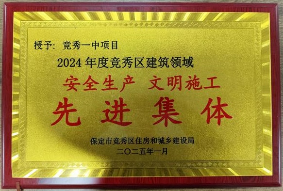 2025年1月14日,在保定市競秀區(qū)住房和城鄉(xiāng)建設(shè)局舉辦的2024年度總結(jié)表彰大會上,六分公司競秀一中項(xiàng)目部被授予“安全生產(chǎn)文明施工先進(jìn)集體”榮譽(yù)稱號。