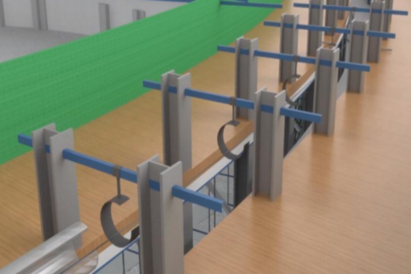 河北新彭楠焦化有限公司 251 萬(wàn)噸/年焦化產(chǎn)能整合及減量項(xiàng)目部和安徽珍珠水泥集團(tuán)股份有限公司4000t/d新型干法水泥熟料生產(chǎn)線項(xiàng)目部,依托項(xiàng)目大直徑預(yù)應(yīng)力筒倉(cāng)施工,成立了專門(mén)的課題實(shí)施小組,利用AotoCAD、Revit等軟件,進(jìn)行BIM建模分析,確定改進(jìn)方向,最終創(chuàng)新技術(shù)方法進(jìn)行施工。在大直徑預(yù)應(yīng)力筒倉(cāng)鋼絞線施工時(shí),鋼絞線柔軟且易穿出庫(kù)壁,項(xiàng)目部利用直徑10mm薄壁鋼管作為軌道提前進(jìn)行埋設(shè)固定,解決了鋼絞線在滑模施工時(shí)穿設(shè)出軌的問(wèn)題,同時(shí)又減少了人工,加快了施工速度,在保證安全的前提下降低了施工成本。在此基礎(chǔ)上,項(xiàng)目部改進(jìn)現(xiàn)有穿束作業(yè)工藝,采用雙向機(jī)械化穿束技術(shù),結(jié)合行程觸碰限位器精準(zhǔn)控制穿束長(zhǎng)度,大幅縮減了穿束時(shí)間,簡(jiǎn)化了流程,降低了人力投入,減小了滑模平臺(tái)的承載力,提高了安全性。