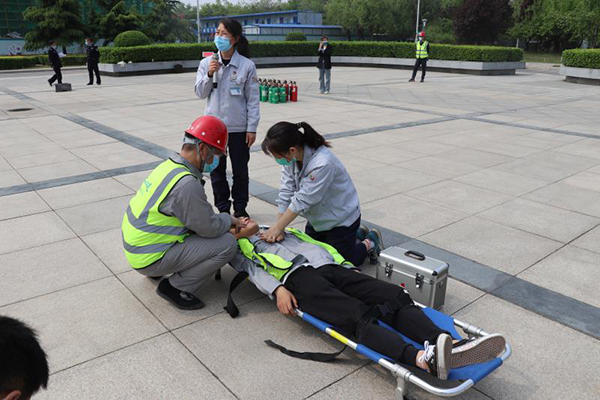 上午10點(diǎn),消防救援支隊(duì)講解員對全體人員進(jìn)行消防安全知識(shí)培訓(xùn),詳細(xì)講解了防煙面罩正確佩戴方法、疏散逃生要領(lǐng),以及滅火器的使用方法和注意事項(xiàng)。10點(diǎn)半左右,演練正式開始,施工現(xiàn)場三區(qū)二層濃煙滾滾,“著火了,著火了¨¨¨”項(xiàng)目安全員在現(xiàn)場巡查時(shí)發(fā)現(xiàn)火情高聲呼喊,周圍施工人員迅速拿滅火器進(jìn)行滅火,項(xiàng)目經(jīng)理張玉賓接到險(xiǎn)情后馬上通知義務(wù)消防隊(duì)員滅火并組織緊急疏散。大家用濕毛巾捂住口鼻,俯身低頭按照演練逃生路線快速從現(xiàn)場撤離到演練集合區(qū)。在大家撤離火災(zāi)現(xiàn)場的同時(shí),救援組孫杰、楊克、董擁軍等人把傷員抬到通風(fēng)處,他們在醫(yī)療救護(hù)組的指導(dǎo)下,用雙手拍打傷者雙肩并呼叫他的名字、用觸摸頸動(dòng)脈等方法斷傷者是否喪失意識(shí),并進(jìn)行心肺復(fù)蘇。心肺復(fù)蘇演練時(shí),按壓胸部是最有效也是最常用的辦法,施救人員首先在傷者兩乳頭連線中間,胸骨中下三分之一處找準(zhǔn)按壓點(diǎn),然后用手掌根部緊貼傷者胸部,兩手重疊,五指相扣,手指翹起,肘關(guān)節(jié)伸直,用上身重量垂直下壓30次,經(jīng)過救治傷者最終蘇醒,整個(gè)搶救過程有條不紊,最后藁城區(qū)消防救援大隊(duì)長張海寧對應(yīng)急預(yù)案演練進(jìn)行了點(diǎn)評(píng),此次火災(zāi)應(yīng)急預(yù)案演練圓滿結(jié)束。
