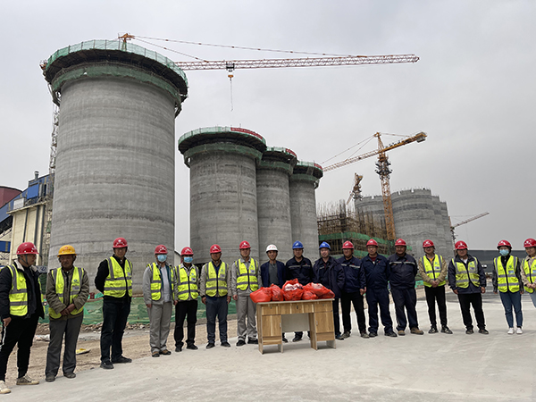 從2020年12月5日開始到2021年2月底,項目所在地政府連續(xù)發(fā)布大氣污染預(yù)警,項目斷斷續(xù)續(xù)停工達一個月,導(dǎo)致工期延誤。項目部急業(yè)主之所急,預(yù)警結(jié)束后,立即對各房號施工重新進行細(xì)致策劃,制定詳細(xì)的月計劃、周計劃、日計劃,自3月4日起按照部署緊鑼密鼓地展開水泥儲存庫滑模工程施工。在勞力組織上,項目部重新梳理各工序,進一步優(yōu)化配置各作業(yè)工種,同時實行24小時兩班倒連續(xù)施工?;炷吝B續(xù)澆筑是滑模施工的關(guān)鍵,項目部將用于混凝土垂直運輸?shù)钠嚤迷黾拥?臺,筒倉滑模以每天3.5米的速度持續(xù)快速滑升。在粉煤灰?guī)旎J┕て陂g,有一半的天數(shù)都在下雨,風(fēng)力等級都在三級,大家迎難而上,喊出了“刮風(fēng)當(dāng)電扇,下雨當(dāng)流汗,大伙拼命干”的口號,充分發(fā)揚四建職工的鐵軍精神,齊心協(xié)力搶抓施工。項目部全體人員勠力同心、通力合作,自滑模開始至4月28日水泥配料站最后一方混凝土澆筑完成,歷時56天,提前4天完成施工任務(wù)。