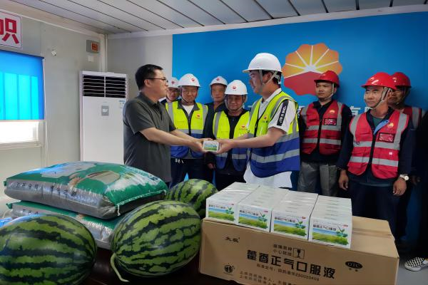 因近日持續(xù)高溫,現(xiàn)場的施工環(huán)境給堅(jiān)守一線的施工人員帶來了嚴(yán)峻“烤”驗(yàn),也時(shí)刻牽動(dòng)著分公司領(lǐng)導(dǎo)的心。6月12日,分公司黨支部書記、工會(huì)主席臧聯(lián)合到項(xiàng)目部詳細(xì)了解一線人員工作和生活情況,檢查消防和防暑降溫工作,為大家發(fā)放了西瓜、綠豆、藿香正氣口服液等防暑物品,為高溫下堅(jiān)守崗位的項(xiàng)目職工帶來了“娘家人”的問候和關(guān)懷,并叮囑大家要在保障自身安全前提下完成好項(xiàng)目工作。